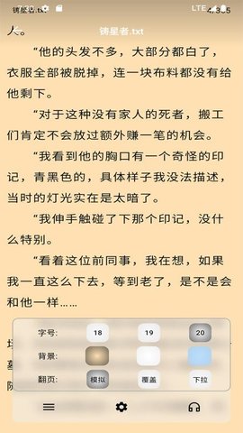 3、在阅读界面,使用设置菜单调整翻页效果为滑动或点击,并根据需要更改字号大小以优化视觉体验。