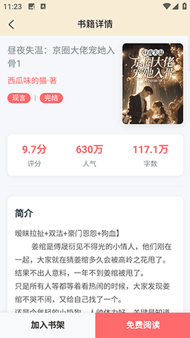 2、点击小说封面进入详情页面,查看作品简介和章节列表。