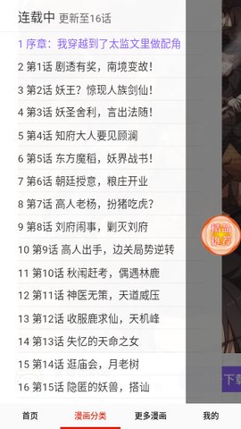 2、详情页向下滑动可查看故事简介与角色介绍,点击章节列表右侧的下载图标可缓存单话内容。