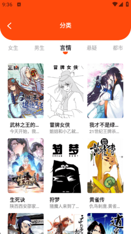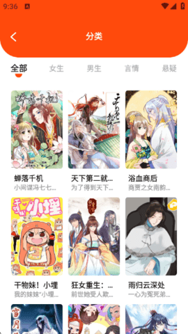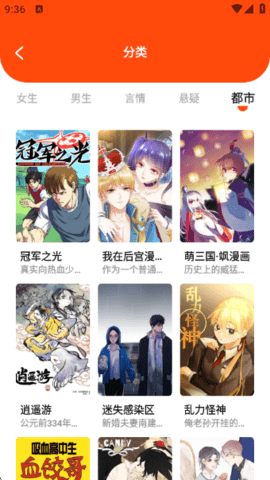 1、进入应用后向左滑动屏幕,可以浏览按题材分类的漫画合集,包括奇幻、科幻、恋爱等二十余种类型。
