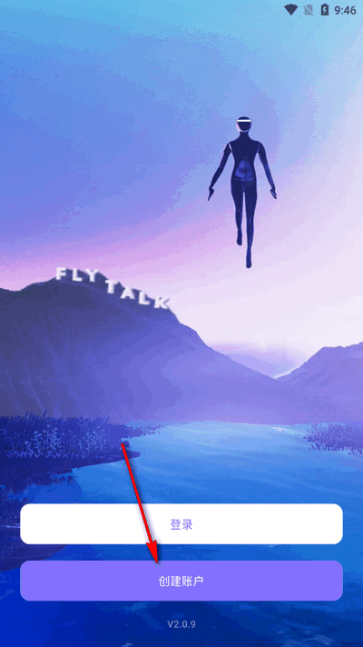 打开 飞聊(FlyTalk)安卓版,点击底部的【创建账号】按钮。