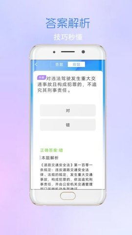3、每道题目都配有详细的文字解析,阐述答案背后的交通法规依据,加深学员对考点的理解。
