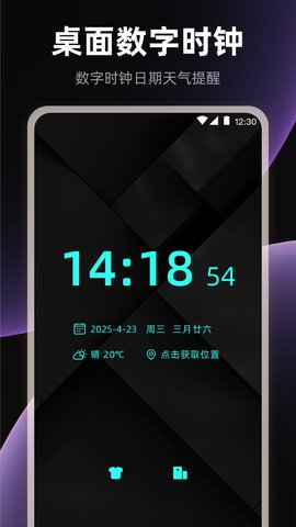 1、桌面小组件库包含拟物闹钟、电子荧光牌等主题,长按桌面即可添加不同尺寸的时钟模块。