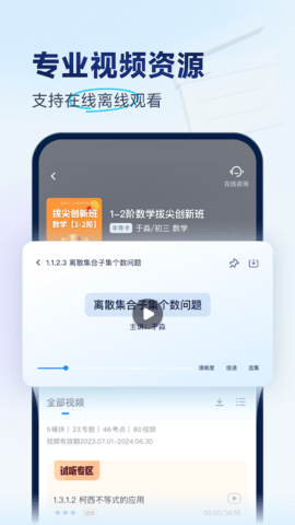 3、课程下载后支持离线播放,在地铁、宿舍等网络不稳定场所也能持续学习。