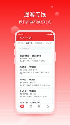 一路同行是一款北京公交出行必备的手机应用,让你随时掌握公交动态,轻松规划行程。打开软件就能看到附近的公交站点和实时到站信息,再也不用在站台盲目等待。整合了线路查询、扫码乘车、行程补登等实用工具,让日常通勤变得省心又高效。