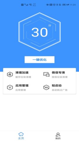 1、打开软件后点击首页的一键优化按钮,系统会自动扫描并处理垃圾文件和后台进程。