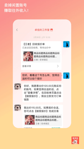 4、独创账号价值成长体系,会根据账号活跃度、装备更新情况动态调整估值,帮助卖家把握最佳出手时机。