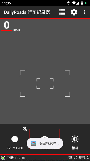 2、长按屏幕中央的红色录制按钮3秒进入待命模式,此时界面会显示GPS信号强度,建议等待卫星数量超过4颗再开始行程。