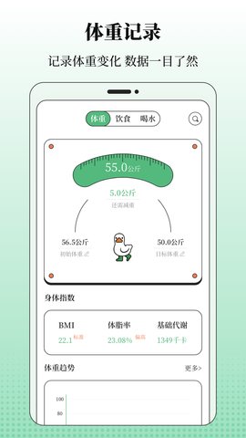 5、定期查看数据统计页面,了解体重变化趋势和营养摄入情况。
