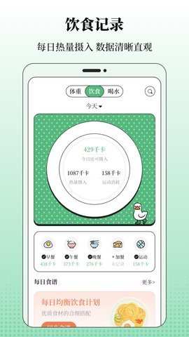 1、内置智能热量分析系统可自动识别各类食物的营养成分,根据用户输入的食谱实时计算每日热量摄入情况。