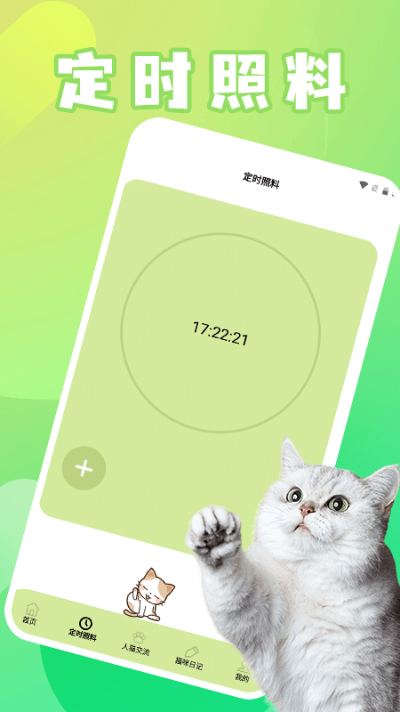1、日常提醒系统可设置喂食、梳毛、清洁等多项定时提醒,避免因忙碌疏忽猫咪的日常照料。