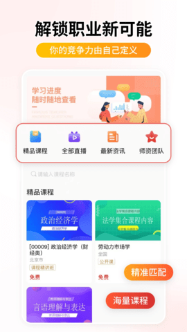 4、课程体系涵盖职业技能、学历提升、兴趣培养等多个维度。