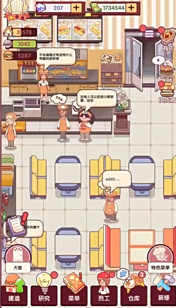 2、员工培养系统包含技能树发展路径,服务生可专精于快速点单或客户关系维护。