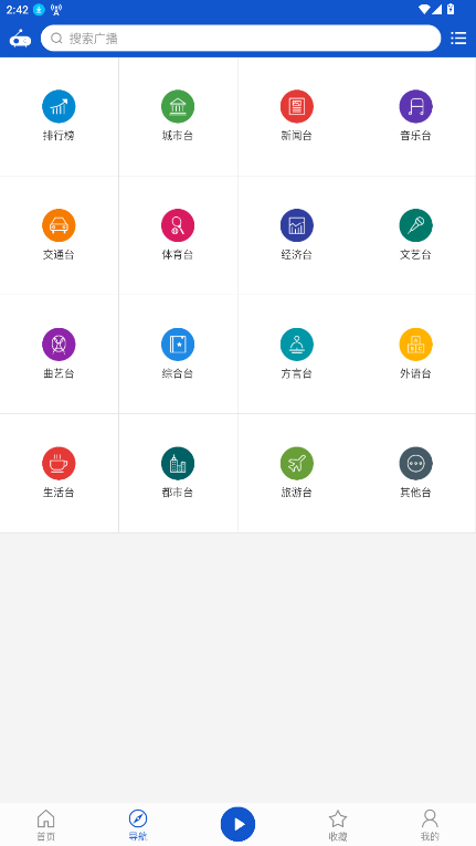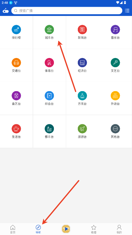 1、在主界面导航栏中找到城市电台分类,这里按照地域划分了全国各地的广播电台资源。
