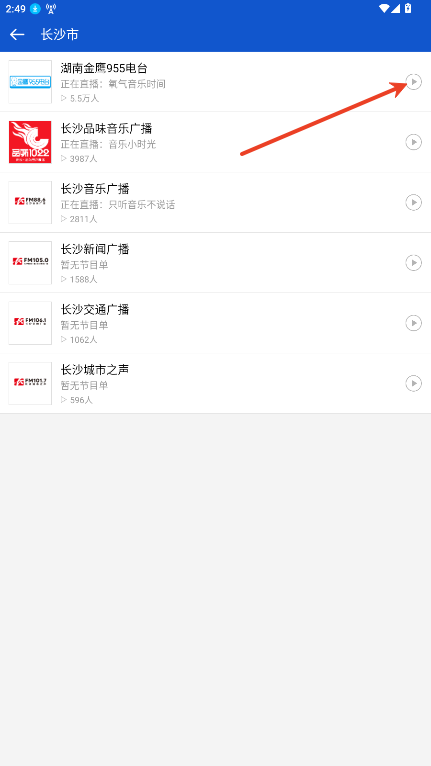 4、点击电台名称右侧的播放按钮,系统会自动加载该电台的直播流,稍等片刻即可开始收听实时广播。