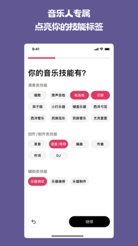 2、完善个人资料时,可以上传自己演唱或演奏的音频片段,能更好地展现音乐特长。