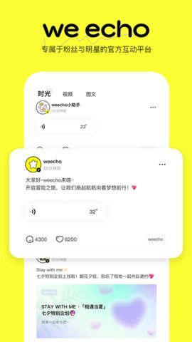 weecho是一款由哇唧唧哇娱乐推出的明星互动平台,让粉丝能够与偶像建立更直接的联系。你可以实时参与明星发起的各种话题讨论,感受与偶像近距离交流的独特体验。平台还提供了丰富的互动场景,让每位粉丝都能找到适合自己的交流方式,创造属于自己的追星记忆。