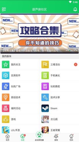 打开 葫芦侠 应用,点击底部或首页中的 “修改器” 功能入口。