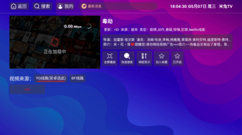 3、选择任意视频进入播放界面,右下角的投屏图标可连接其他显示设备。
