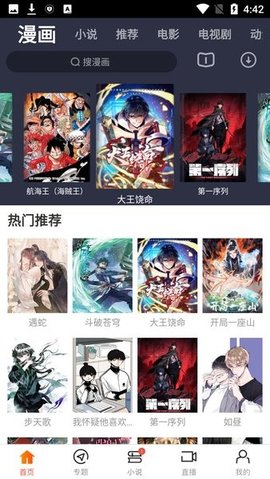 1、在主界面浏览推荐内容,或使用顶部搜索栏查找特定影视剧、漫画或小说。