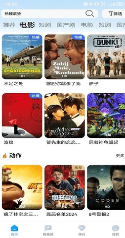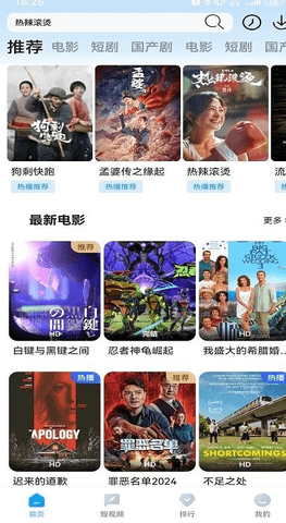 1、在首页顶部的搜索框直接输入想看的影视名称,比如输入热辣滚烫即可找到相关资源。