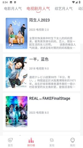 1、在主页面可以看到不同分类的节目板块,上下滑动浏览最新上线的电影和电视剧推荐列表。