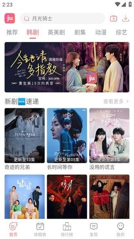 1、打开软件后在首页浏览推荐内容,或通过顶部的搜索框输入剧集名称进行精确查找。