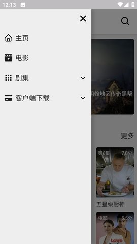 1、启动应用后首先会进入内容展示界面,此处按区域和类型对影视作品进行了分区陈列。