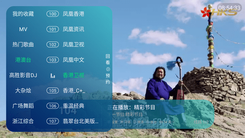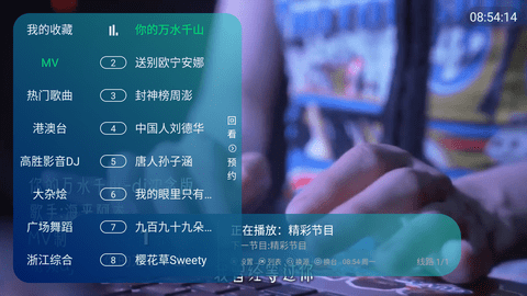 1、首次启动后,系统会显示频道分类导航栏,此时可直接在左侧区域上下滑动浏览可用频道。
