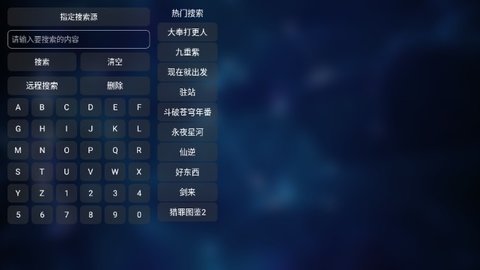 3、在任意界面按下遥控器搜索键会弹出虚拟键盘,输入想看的作品名称后系统会自动显示相关结果。