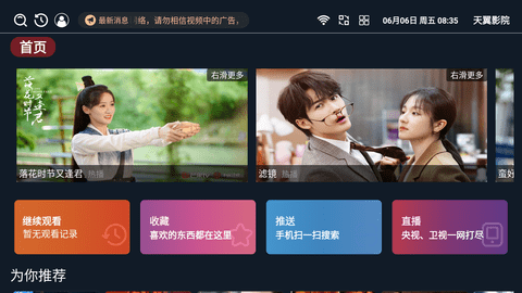 2、主页推荐区域会实时更新当前热门的影视作品,点击推荐内容即可立即开始播放,无需多余操作步骤。