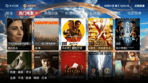 2、使用遥控器方向键浏览分类栏目,找到感兴趣的影片类型专区。