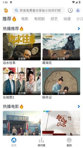 1、启动软件后,首页会展示推荐的热门内容,包括电视剧、电影和综艺等分类,可以直接点击进入观看。