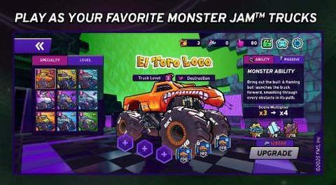 1、传奇卡车阵容囊括了Grave Digger和Megalodon等经典车型,每台车辆都经过官方授权还原真实细节。