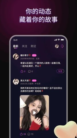 4、在动态社区发布个人生活片段,吸引志趣相投的用户主动联系。