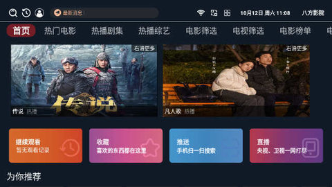 1、打开八方影院应用后,首先在首页浏览最新推荐的影视内容,这里会显示当前热门的电影和电视剧。