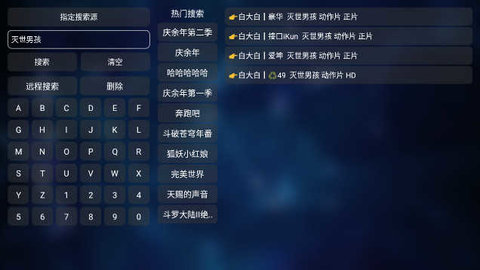 2、在搜索框输入影片名称或关键词,系统会自动显示相关搜索结果。