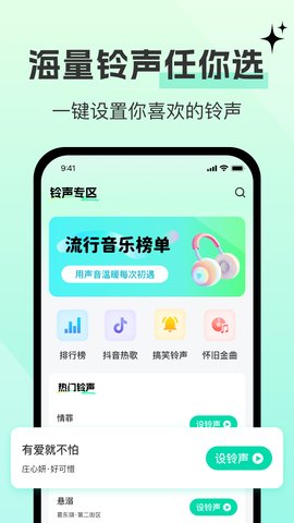 酷多铃声是一款在Android设备上运行的手机铃声管理工具,让用户能够自由获取各类铃声素材并亲手创作独特音效。软件内置文字转语音生成铃声的机制,收录了上万首免费铃声资源,覆盖中国移动、联通和电信的彩铃服务,使手机铃声更具个人风格。还整合了多样化的壁纸与主题元素,允许自由更换手机桌面视觉样式,并设有自定义编辑模块。视频来电秀功能可替换传统通话界面,在接听或拨打电话时在双方设备上展示动态画面或自拍图像,为通话过程增添视觉趣味。资源库包含海量热门音乐片段,涵盖影视原声、网络流行音效及歌手单曲等内容,每日持续更新千余条新素材。操作流程经过简化,设置手机铃声、通知音、闹钟提示音等均可快速完成。用户还能利用音频剪辑、录音转换及文字转语音工具制作专属铃声,并通过社区板块分享创作成果。语音搜索功能支持通过歌名、艺人名称、旋律片段或原声采样快速定位目标铃声。