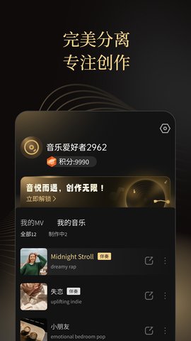 1、会根据用户的历史创作记录,推荐更适合的音乐风格和创作模板。