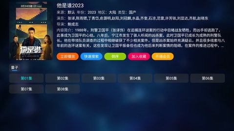 2、选中特定影视海报后按确认键进入详情页,此处可查看剧情简介和演职员信息。