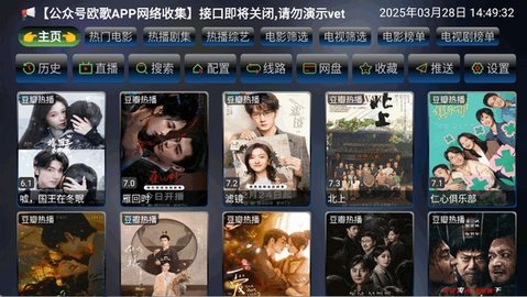 1、在设备中启动应用后,首页会展示最新推荐的影视内容与直播频道入口。