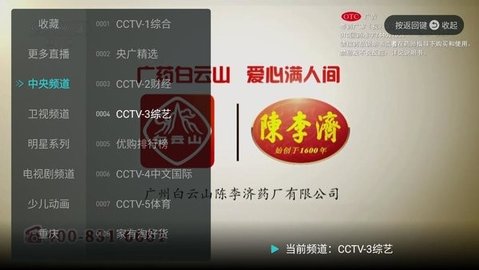 4、在播放界面长按屏幕会弹出功能菜单,可以选择将当前频道添加到个人收藏列表。