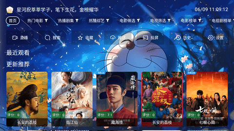 2、点按遥控器菜单键调出侧边栏,选择影视库入口进入点播内容专区。