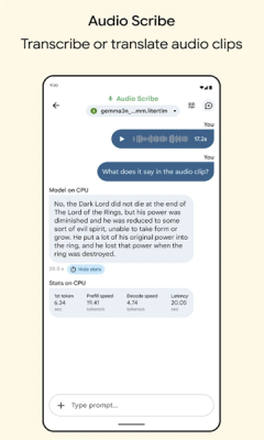 谷歌ai人工智能平台是一款本地离线运行的AI软件,由谷歌官方开发,软件汇集了多种设备端机器学习模型的实际用例,用户无需连接互联网即可在本地设备上体验图像识别、语音处理、自然语言对话等生成式AI技术,这些模型处理数据的过程完全在设备内部完成,有效保障了用户数据的隐私与安全,软件界面以用例图库的形式呈现,方便用户直观浏览和选择感兴趣的功能进行尝试。