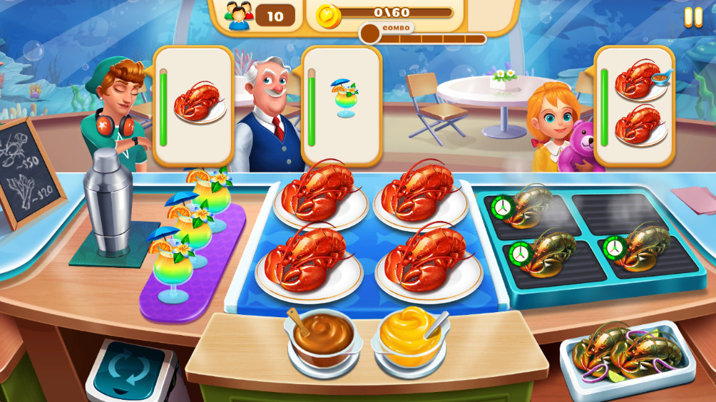 烹饪水族馆破解版是一款将海洋生态与美食制作巧妙结合的经营类手游,在蔚蓝的水族箱背景下展开烹饪冒险,通过指尖操作完成海鲜料理的订单任务,逐步扩建属于你的海底餐厅王国,解锁不同风格的用餐区域与稀有海洋生物伙伴,让每位光临的顾客都能享受到独特的美食体验。