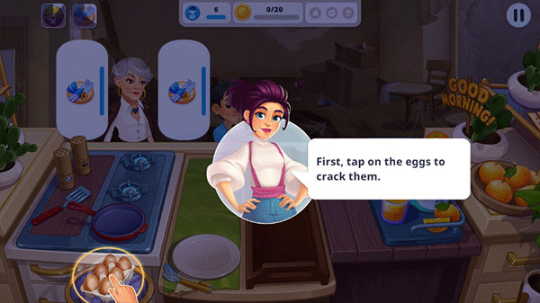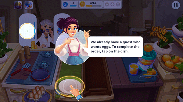 2、观察顾客头顶的气泡图标预判订单,红色感叹号代表急需餐品需优先处理。
