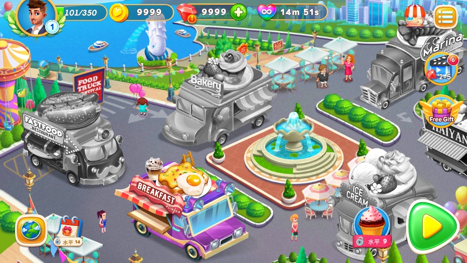 2、游戏内设有多种真实感十足的烹饪场景,从繁忙的市中心到宁静的公园角落,每个地点都带来不同的客流量与挑战。