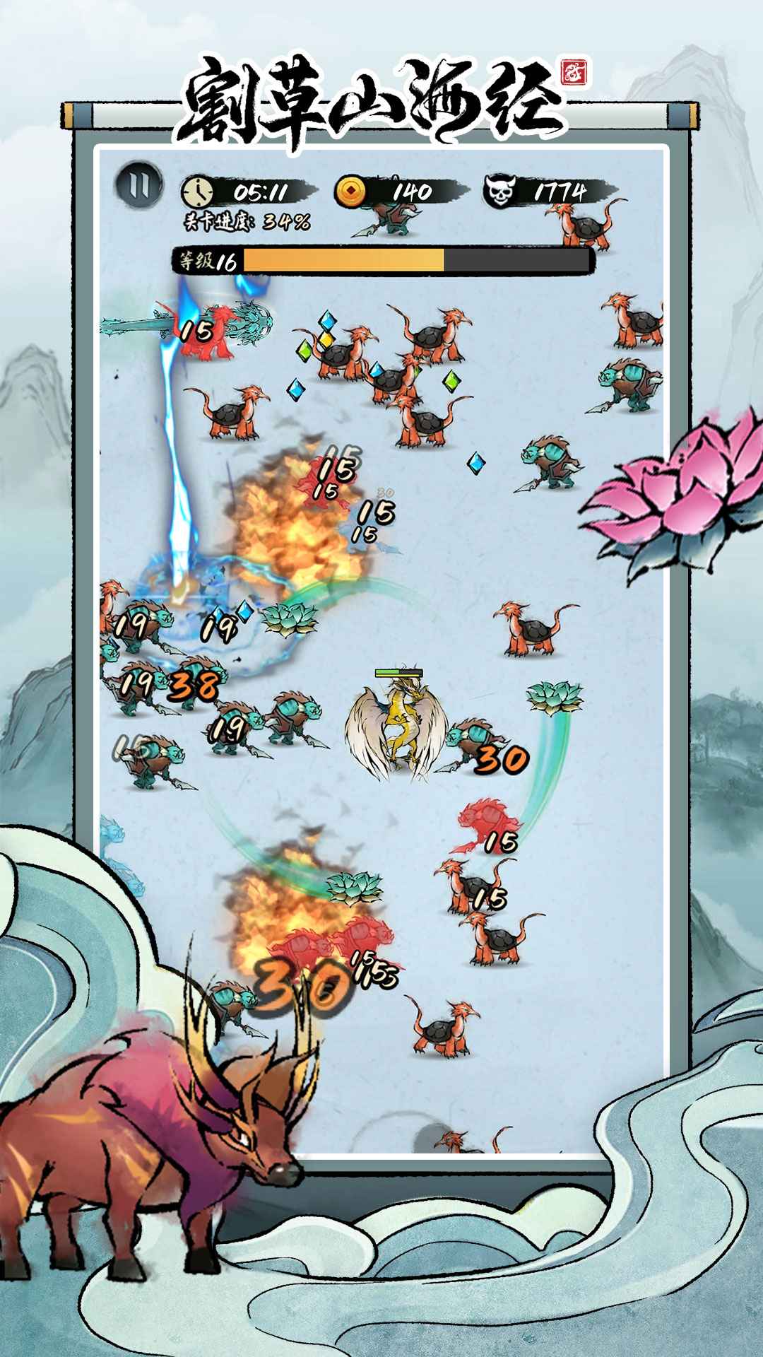 割草山海经是一款以东方神话为蓝本的动作冒险游戏,将古典文献中的奇幻生物与现代割草玩法巧妙结合,玩家在游戏中将面对形态各异的山海异兽,通过灵活走位与技能释放完成清场,随着战斗进程推进,角色会解锁更多强力技能与武器组合,形成独特的战斗流派,让每次割草体验都充满变数与惊喜。