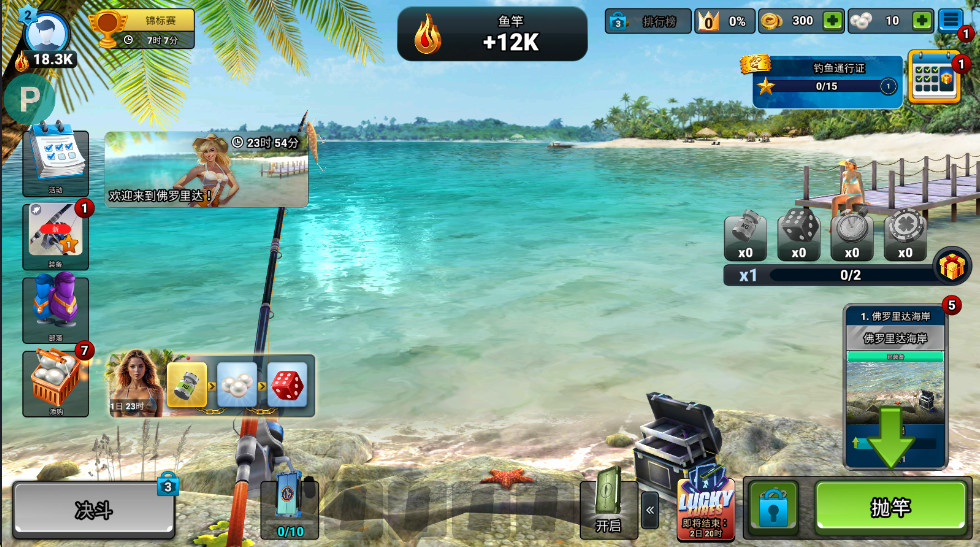 1、选择佛罗里达海岸作为起始钓场时,建议使用旋转亮片诱饵在礁石区进行扇形搜索,重点观察水面突然出现的涟漪波纹。
