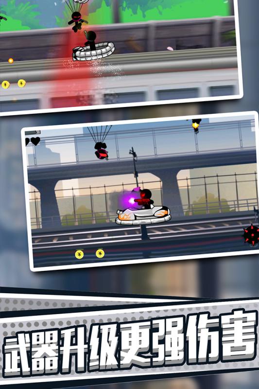 3、子弹升级机制通过金币消耗实现威力叠加,初始手枪经过三次强化后可以穿透护甲,渐进式成长系统让资源管理成为制胜要素。